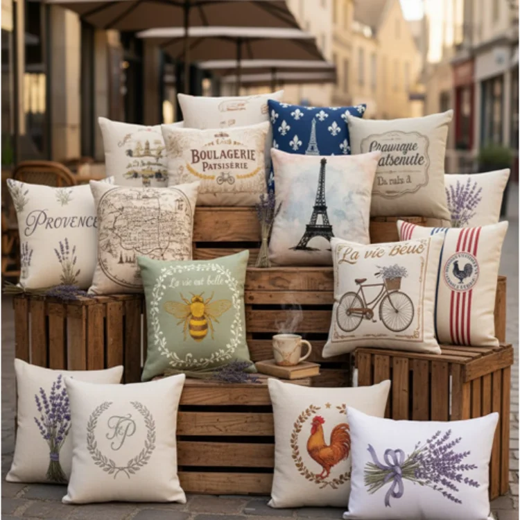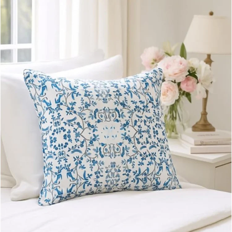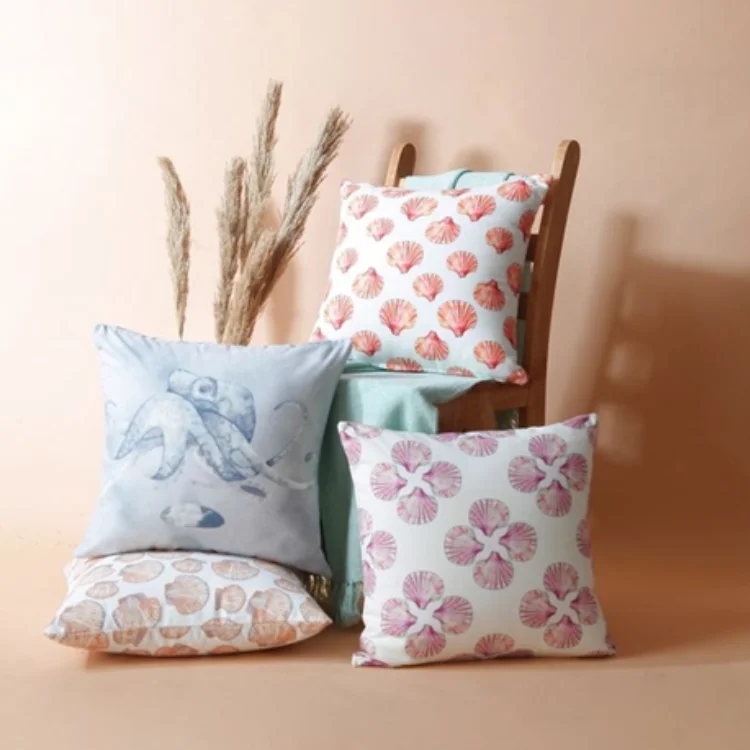 High-quality nonwoven cushion filled with 100% polyester fiber for lasting comfort and shape retention. Waterproof printed front surface, plain white backside, secure bottom zip closure, 45x45 cm size, ideal for garden, patio, balcony, and outdoor seating